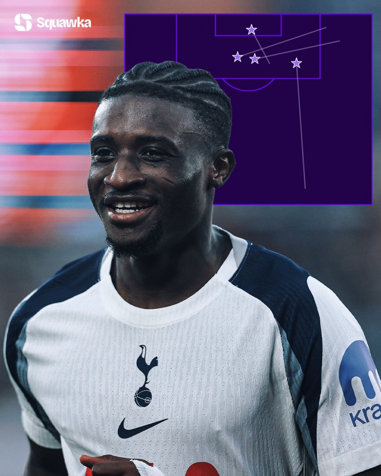 10月4日讯 英超第7轮比赛,库杜斯助攻特尔破门,当今热刺1-1利兹联。