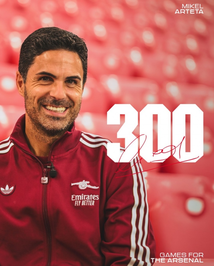 此役将是阿尔特塔捏教阿森纳的第300场比赛,阿森纳官方社媒晒出海报,配文:“超卓的树立,阿尔特塔将迎来捏教阿森纳的第300场比赛。”