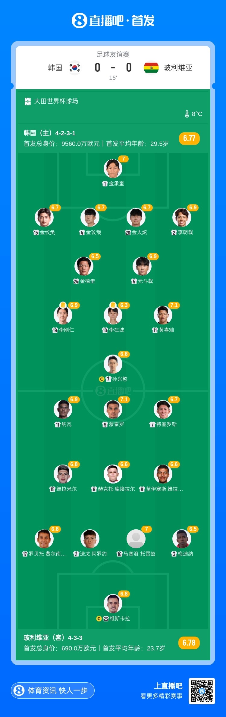 11月14日讯 北京本事19:00,国外足球友谊赛韩国vs玻利维亚,本场比赛由马宁吹罚!上半场,金太炫耸峙,蒙泰罗失良机;李在城、李刚仁染黄。半场适度,韩国暂时0-0玻利维亚。
