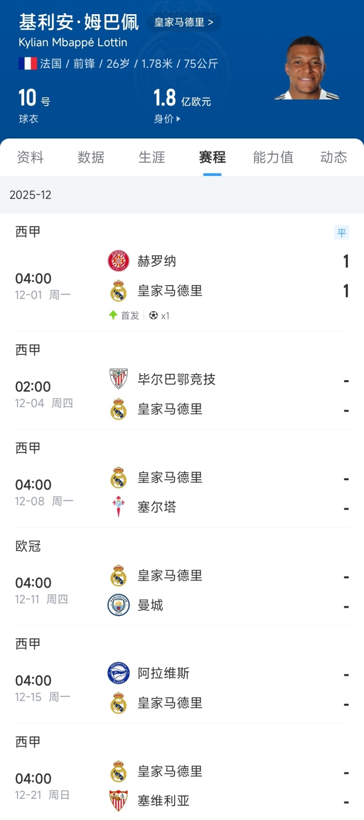 姆巴佩本年剩余比赛