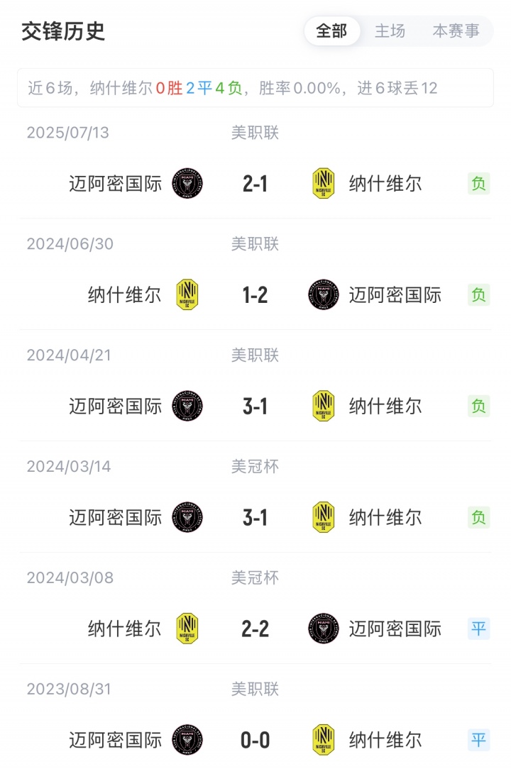 迈阿密国外联赛18胜8平7负积62分,近期收货2连胜;纳什维尔联赛16胜6平11负积54分,近2轮不败。迈阿密对阵纳什维尔已8场不败(5胜3平)。