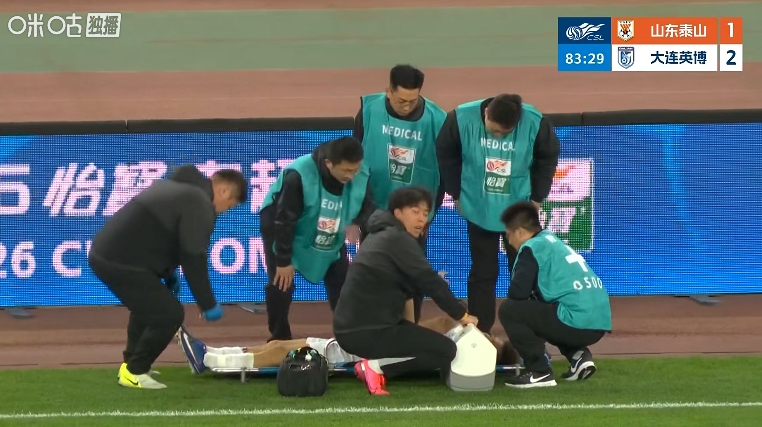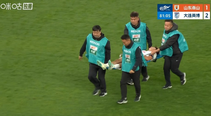 04月04日讯 泰山vs英博第82分钟,杨铭锐被担架抬出场外。随后第83分钟,毛伟杰也被担架抬下。