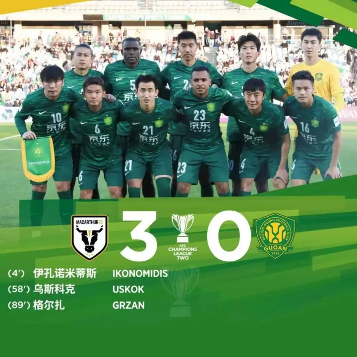 国安官方在本场比赛的战报中写谈:“10月2日,在2025-26亚冠二级联赛小组赛第2轮中,北京国安客场0-3负于麦克阿瑟FC。上半场比赛第4分钟,对方由伊孔诺米蒂斯打入一球。靠近澳超球队的体魄抗拒强度,北京国安彰着不太适应。第12分钟,张玉宁禁区旯旮无礼抽射,莫得射中球门。第23分钟,李磊前插到禁区内射门,球被对方门将化解。临了时辰,李磊的前插再度制造要挟,可惜莫得变成射门。上半场比赛死心,北京国安0-1麦克阿瑟FC。易边再战,第52分钟,张玉宁禁区外倒钩射门偏出。第58分钟,对方由6号乌斯科克再入一球。随后,国安接连换上法比奥、古加、曹永竞、林良铭和塞尔吉尼奥等队员加强遑急。第71分钟,古加禁区前沿的远射偏出。第89分钟,麦克阿瑟FC由格尔扎攻入第3球。最终,北京国安客场0-3负于麦克阿瑟FC。