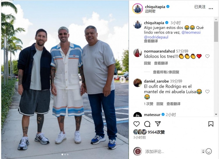塔皮亚社媒晒出与梅西、德保罗的合照,辱弄:“这两个家伙在搞什么样貌😂😂很欢笑再次见到你们。”