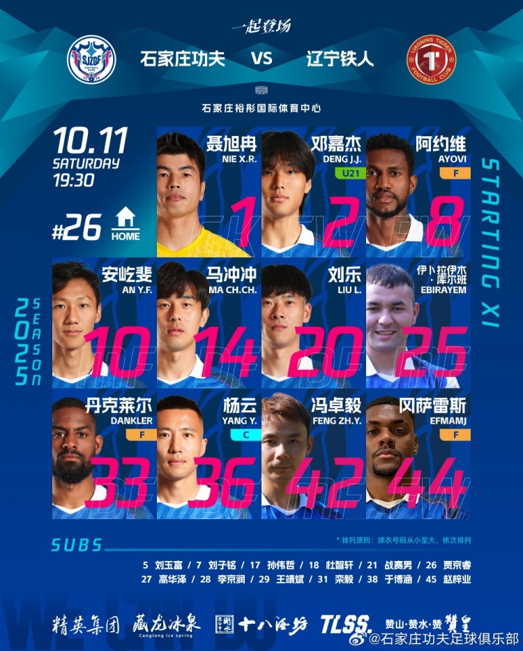 📝石家庄功夫主场对阵辽宁铁东说念主首发名单!