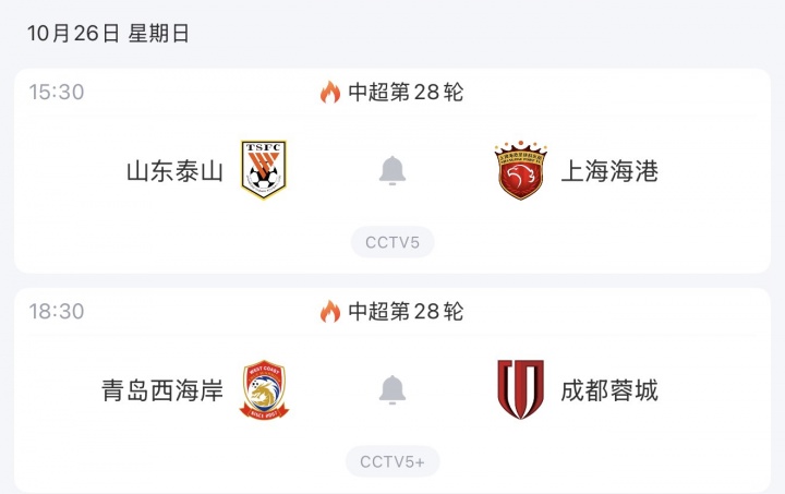 本周日海港将在联赛客场挑战泰山,过时2分的蓉城将客场挑战西海岸。