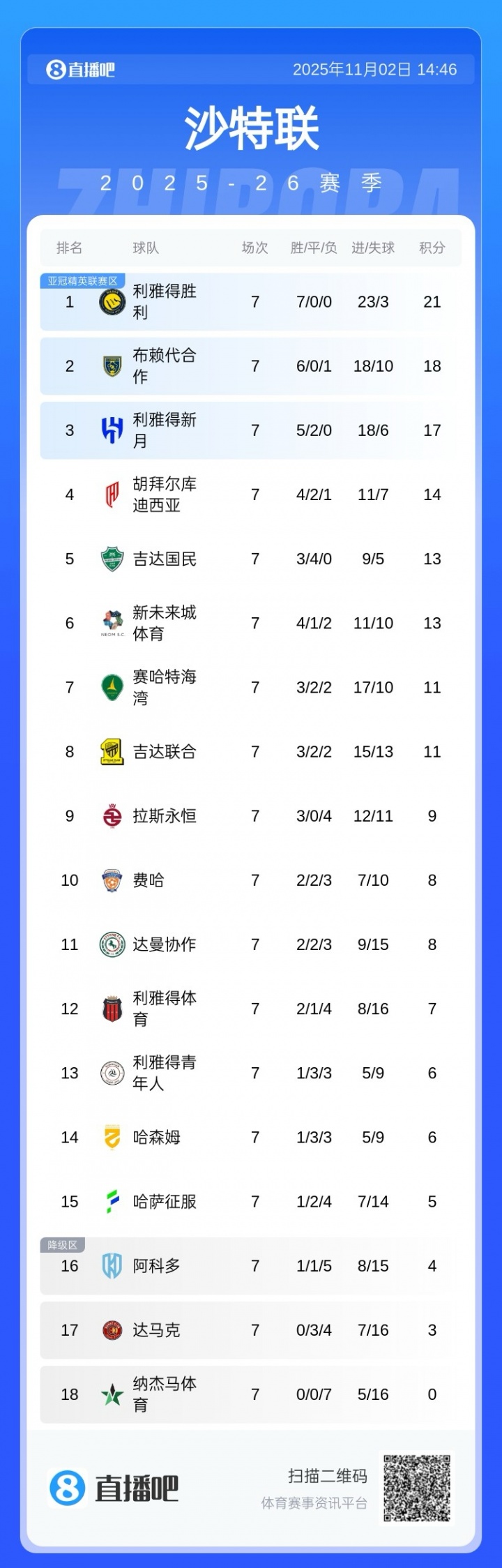 本赛季沙特联,利雅得顺利开局豪取7连胜,狂轰23球仅丢3球,3分上风领跑积分榜。开局阶段,利雅得顺利曾5-0大捷榜二布赖代衔尾、2-0力克卫冕冠军吉达结合。