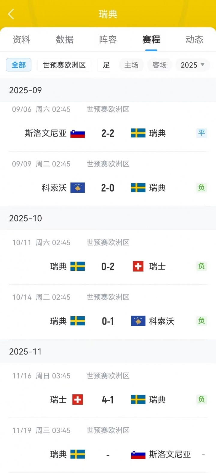 11月16日讯 世初赛欧洲区B组第5轮,瑞典客场1-4遭瑞士横扫,5轮事后仍一胜难求。