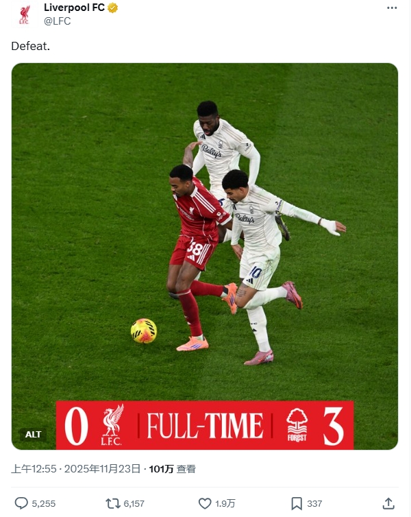 利物浦主场0-3完败左迁区的丛林,本赛季联赛6胜6负,排行掉至第11名。利物浦今夏破费近5亿欧补强,球迷对斯洛特这么的带队战绩很是不悦,不少东谈主命令该罢职他。